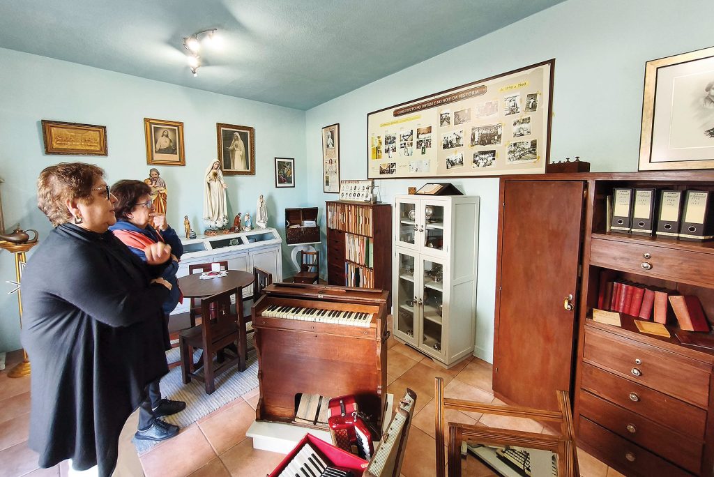 “Nessa altura quisemos organizar algumas peças que vieram das nossas casas, que fomos fechando, e assim nasceu o espaço museológico, com imagens, instrumentos musicais, ferramentas e utensílios usados nas aulas dadas às nossas alunas”, recorda.