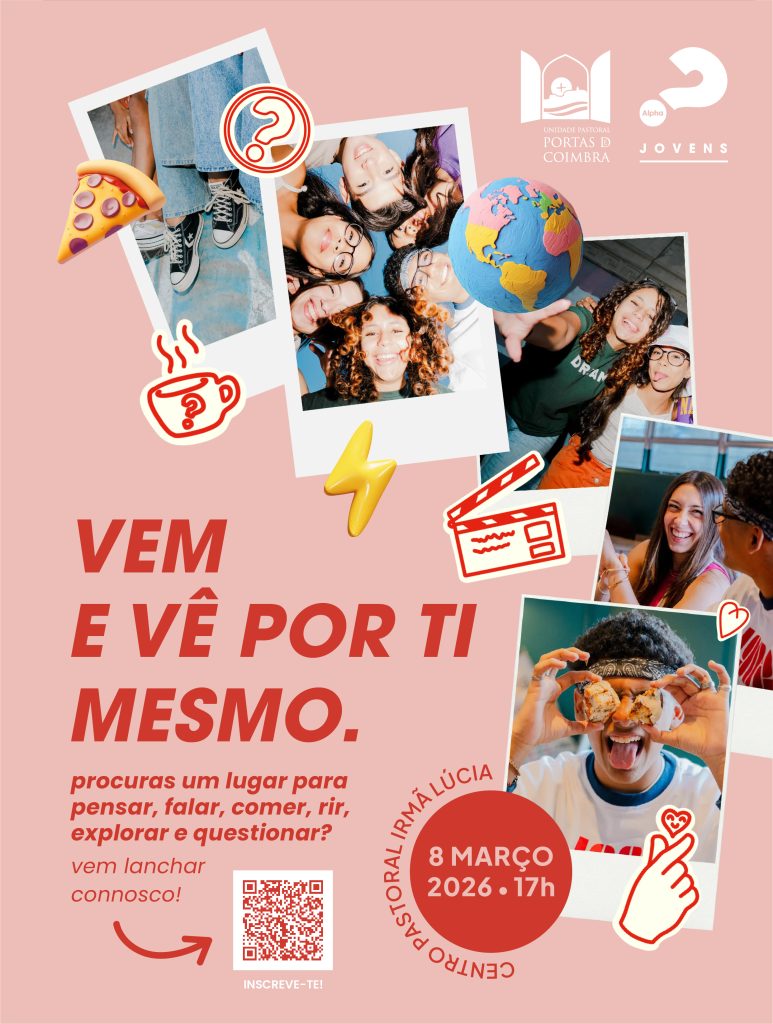 No próximo dia 8 março, domingo, pelas 17h00, vai iniciar na Unidade Pastoral Portas de Coimbra, o III Percurso Alpha Jovens, uma proposta para jovens entre os 15 e 22 anos.